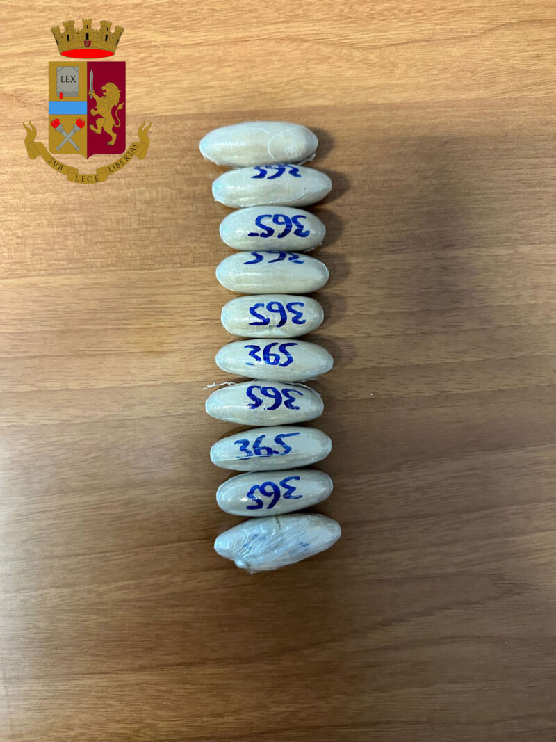 Lo straniero, appena giunto dalla Capitale, occultava all’interno degli indumenti dieci ovuli di eroina, per un peso complessivo di 110 grammi.