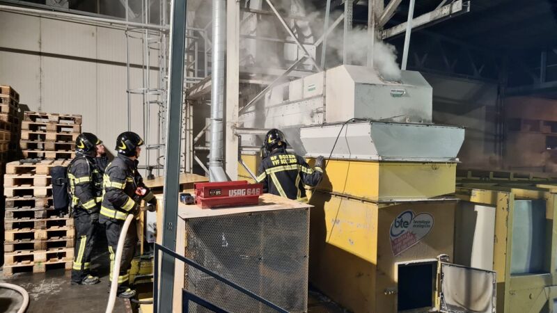 Bolzano, principio di incendio in zona industriale: in fiamme un trituratore per rifiuti della carta