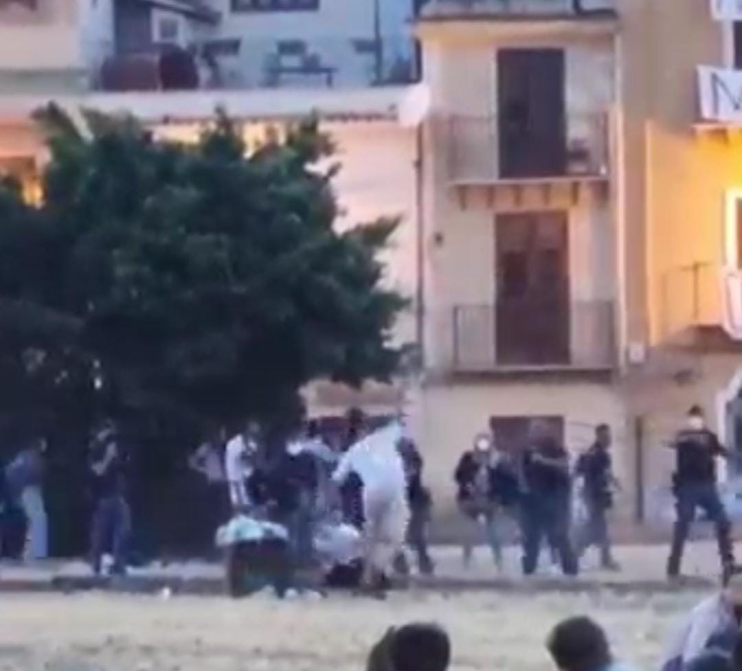 A questo punto sono giunti sul posto i poliziotti del Reparto per calmare l’esagitato, ma diversi ragazzi hanno accerchiato i poliziotti e uno di loro ha spaccato una bottiglia di birra vuota in testa all’agente che stava fermando l’ambulante. Da dì la situazione è degenerata ed è partito un lancio di bottiglie contro gli operatori.