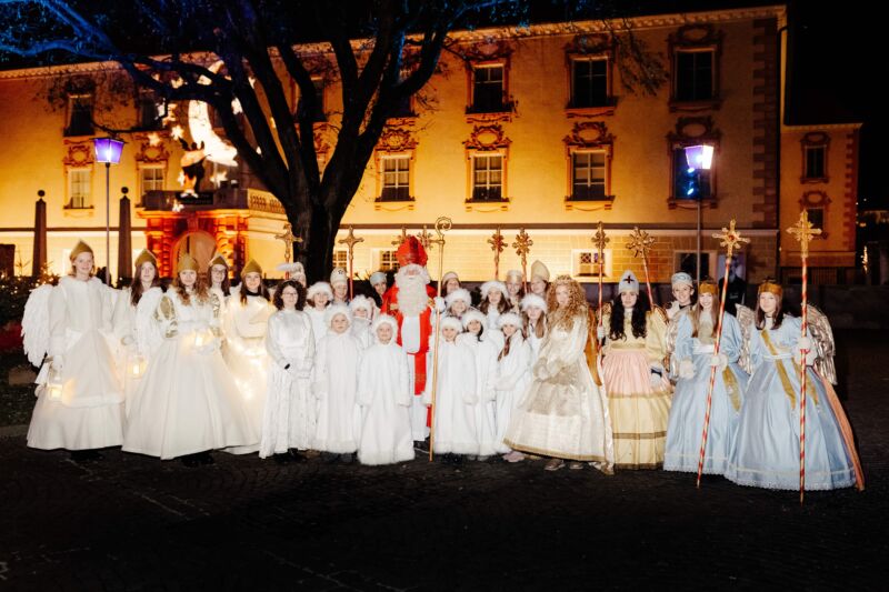 San Nicola sarà accompagnato dalla presenza eterea di un gruppo di angeli, le cui splendide vesti riecheggiano epoche lontane. I costumi, creati con straordinaria cura da Sieglinde Michaeler, rinomata costumista di Bressanone, si ispirano ai dettagliati angeli dei presepi storici conservati nel Palazzo Vescovile Hofburg. Ogni particolare è stato studiato per rievocare la bellezza e la grazia di una tradizione che affonda le sue radici nel passato.