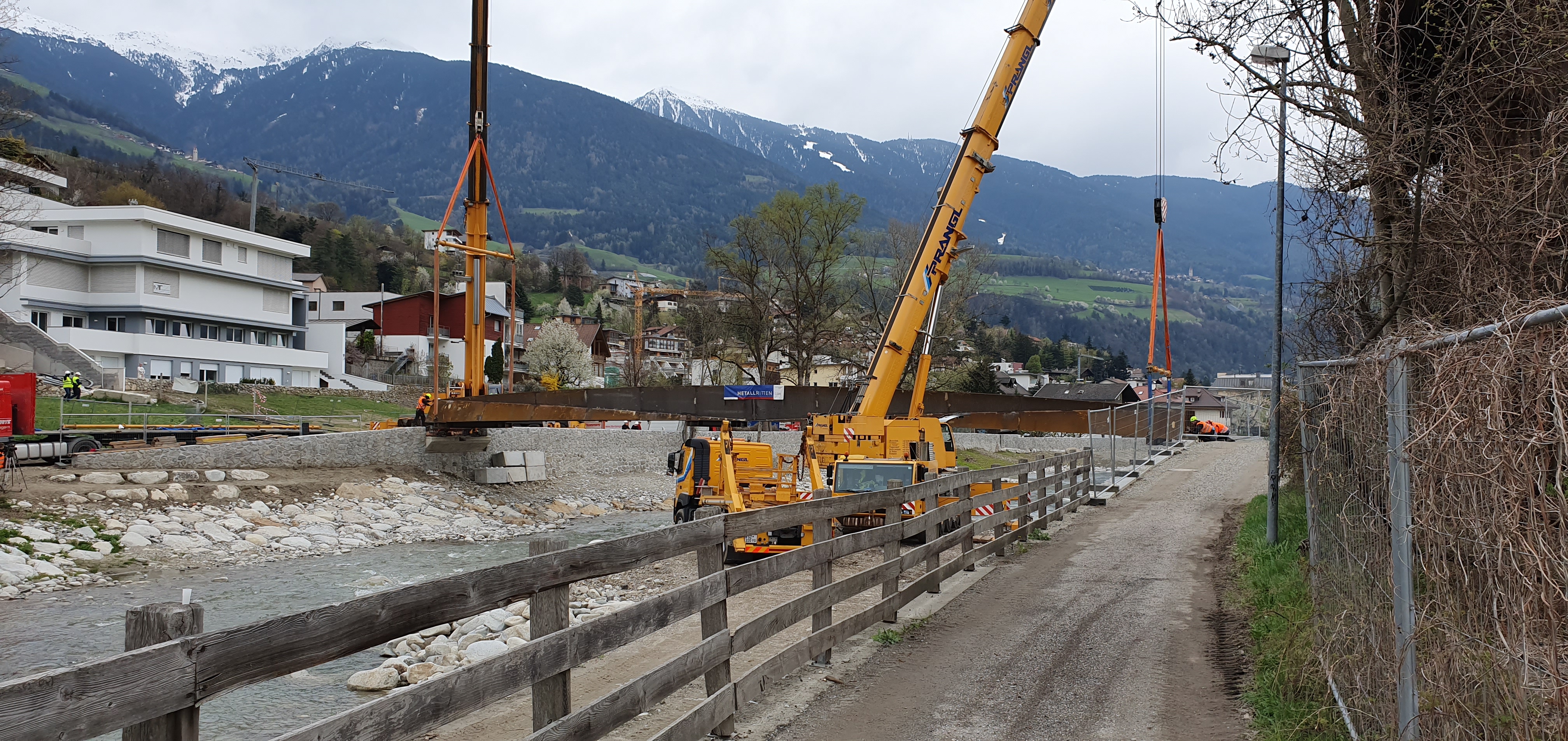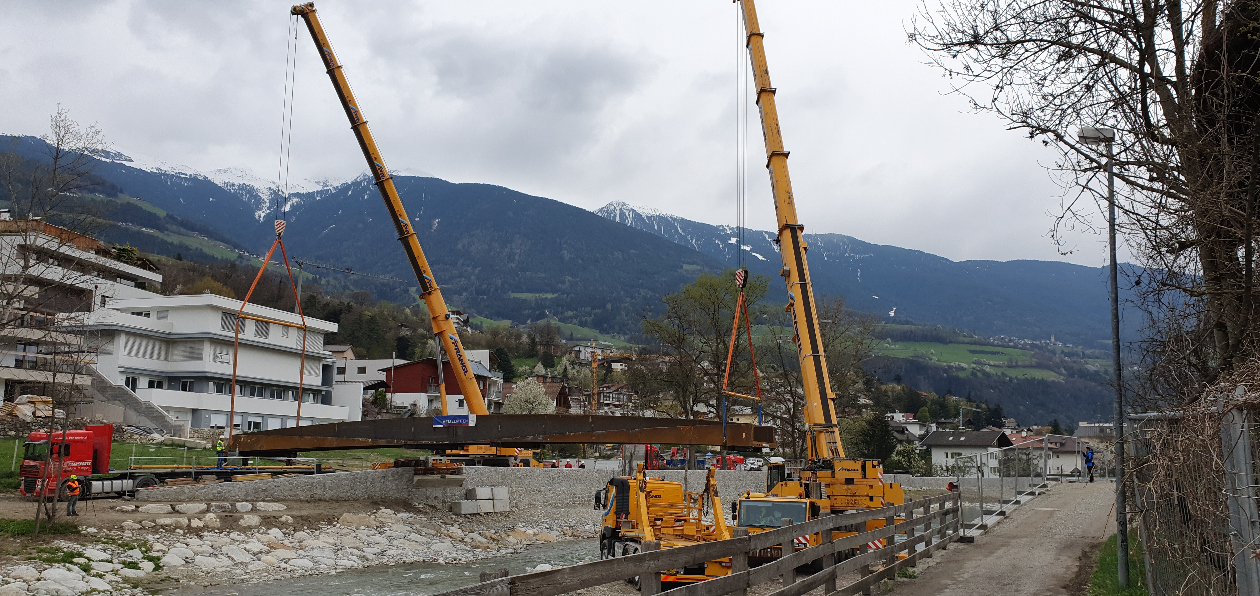 L’ufficio bacini montani della Provincia Autonoma di Bolzano ha realizzato le spalle del ponte, mentre l’impalcato è stato realizzato dalla ditta Metall Ritten su incarico del Comune di Bressanone.