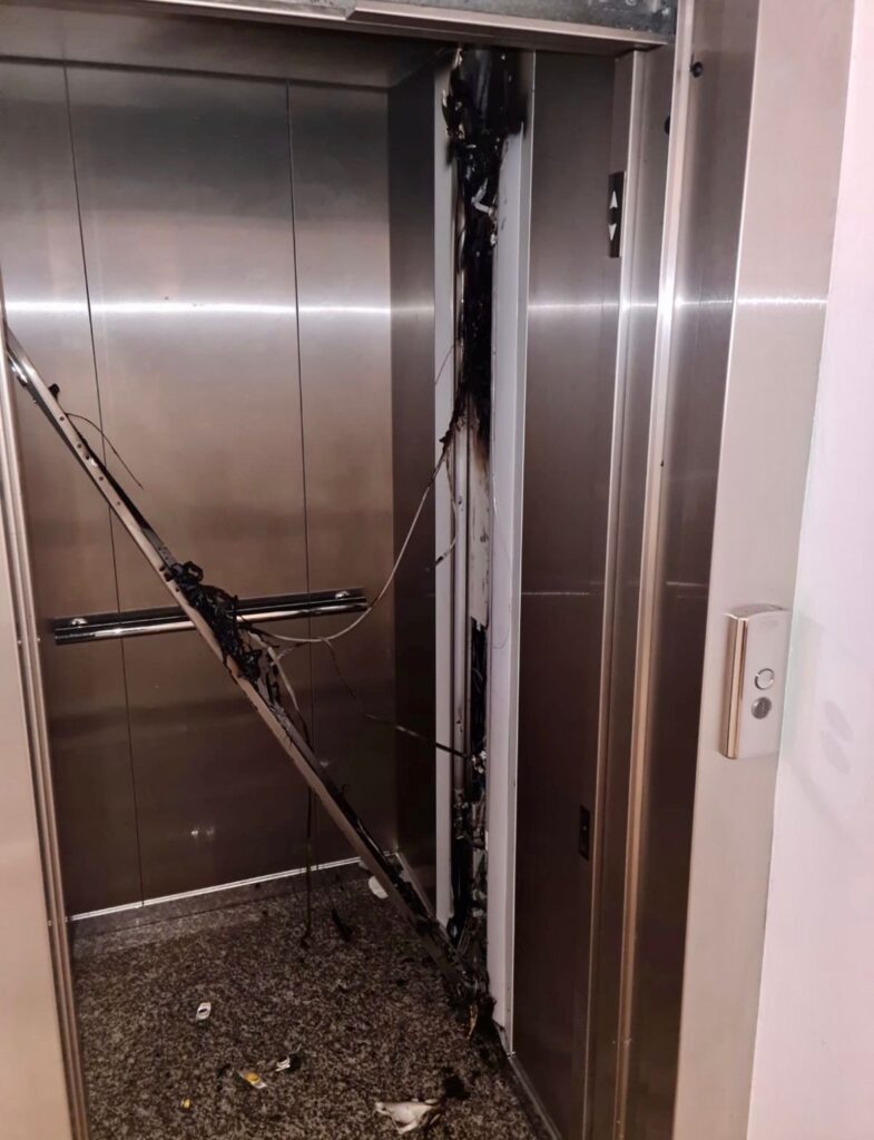 I vigili del fuoco hanno bloccato l’impianto dell’ascensore e tolto la corrente per domare le fiamme in sicurezza. Il fumo ha invaso anche parte del giroscale ed é stato quindi necessario ventilare tutti i locali.