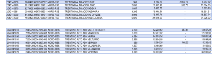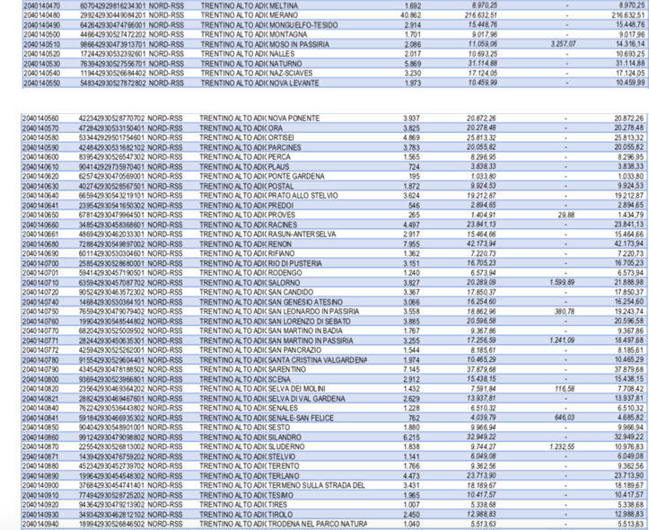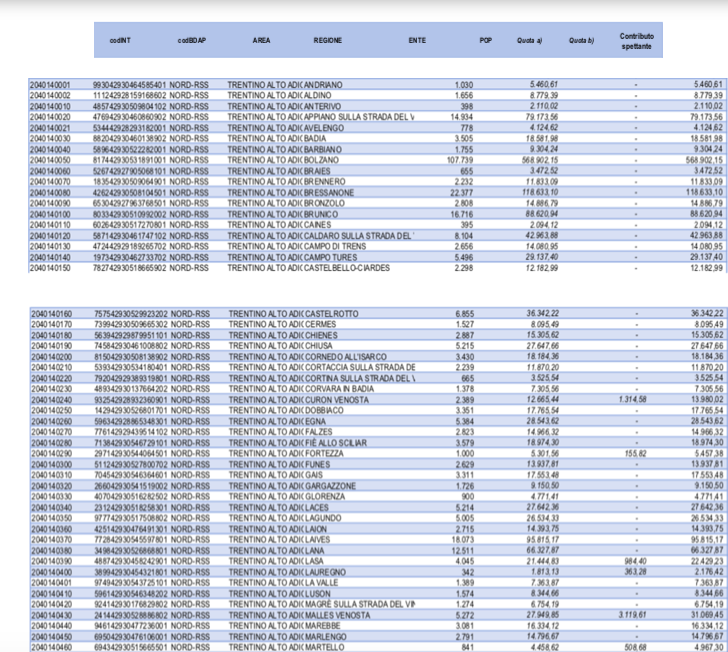 Sotto, i valori della ripartizione Comune per Comune per l’Alto Adige
