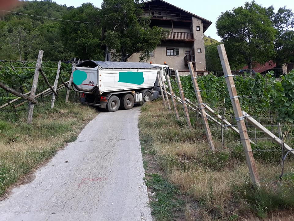 Si è trattato del recupero di un camion carico di catrame. Il grosso mezzo è rimasto incastrato tra le vigne dopo aver imboccato per errore una stradina privata.