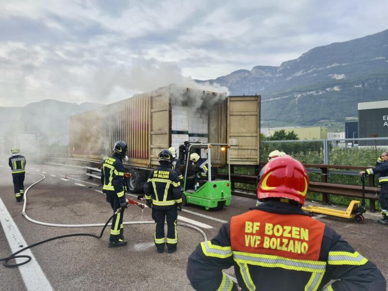 L’allarme è scattato nella giornata di ieri, 10 ottobre all’altezza di Egna al chilometro 105. All’arrivo dei vigili del Fuoco di Bolzano, il mezzo che conteneva una carico di cibo era già quasi completamente avvolto dalle fiamme.
