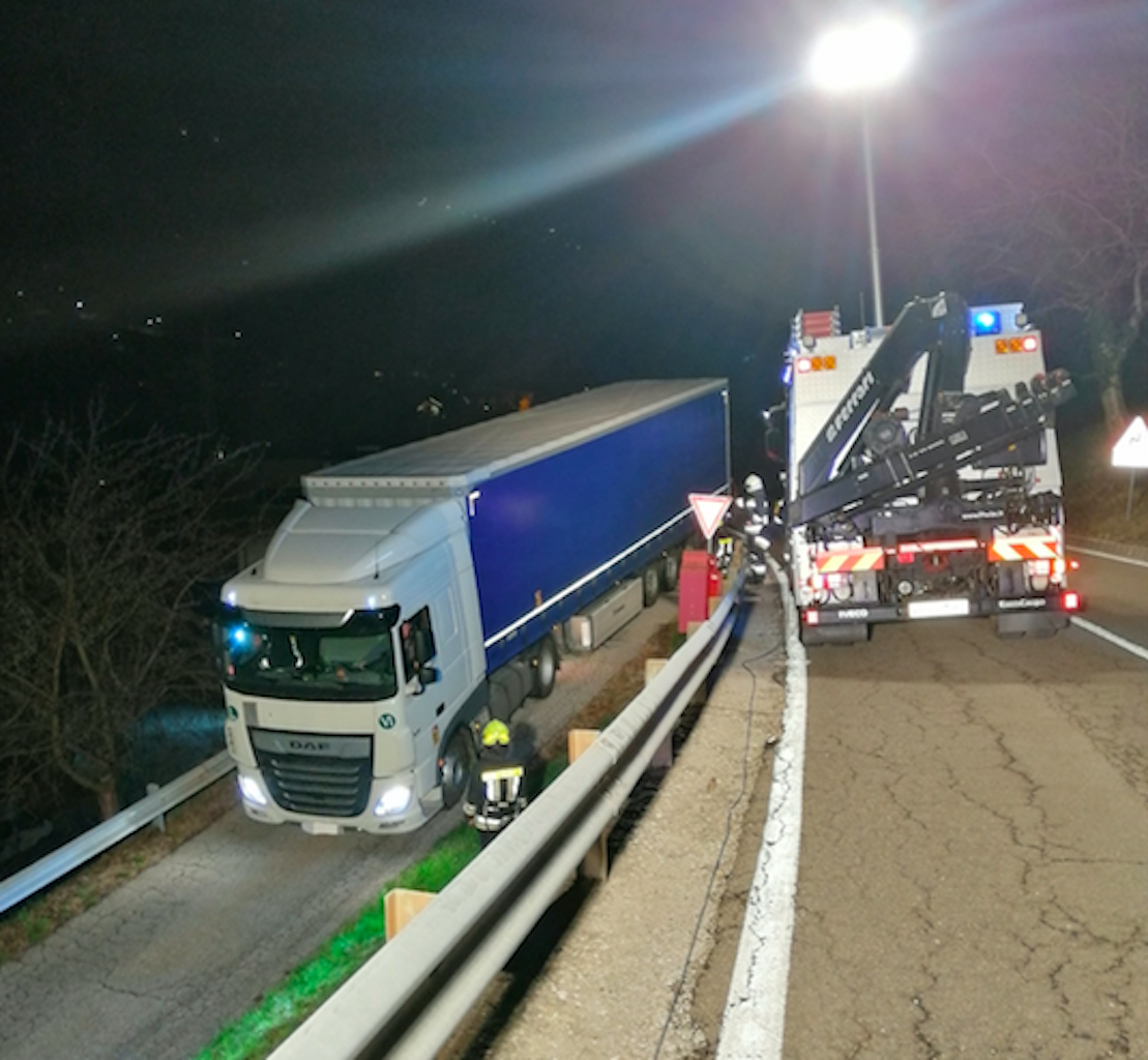 Una volta terminate le operazioni di recupero il conducente del camion ha potuto proseguire il suo viaggio.