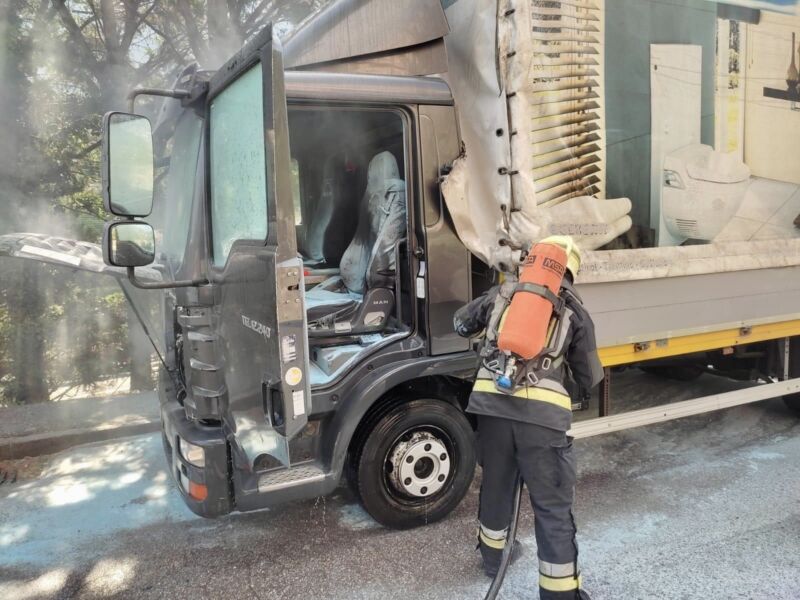 Camion prende fuoco nel centro di Colma