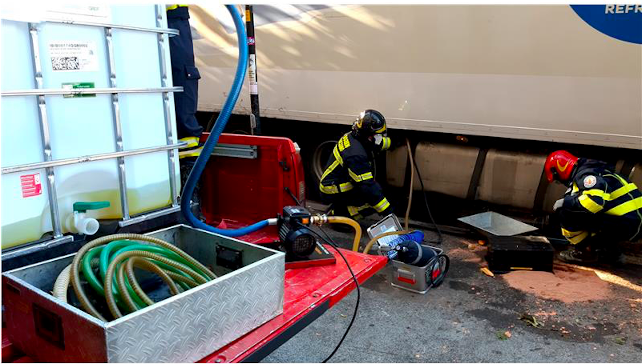 Il grosso mezzo stava salendo una rampa di accesso. Le squadre intervenute sul posto hanno subito ripompato il carburante nel serbatoio in attesa di ulteriori squadre con strumentazione di contenimento adeguata.