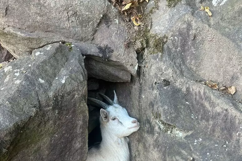 Capretta bloccata sulle rocce recuperata dal soccorso alpino