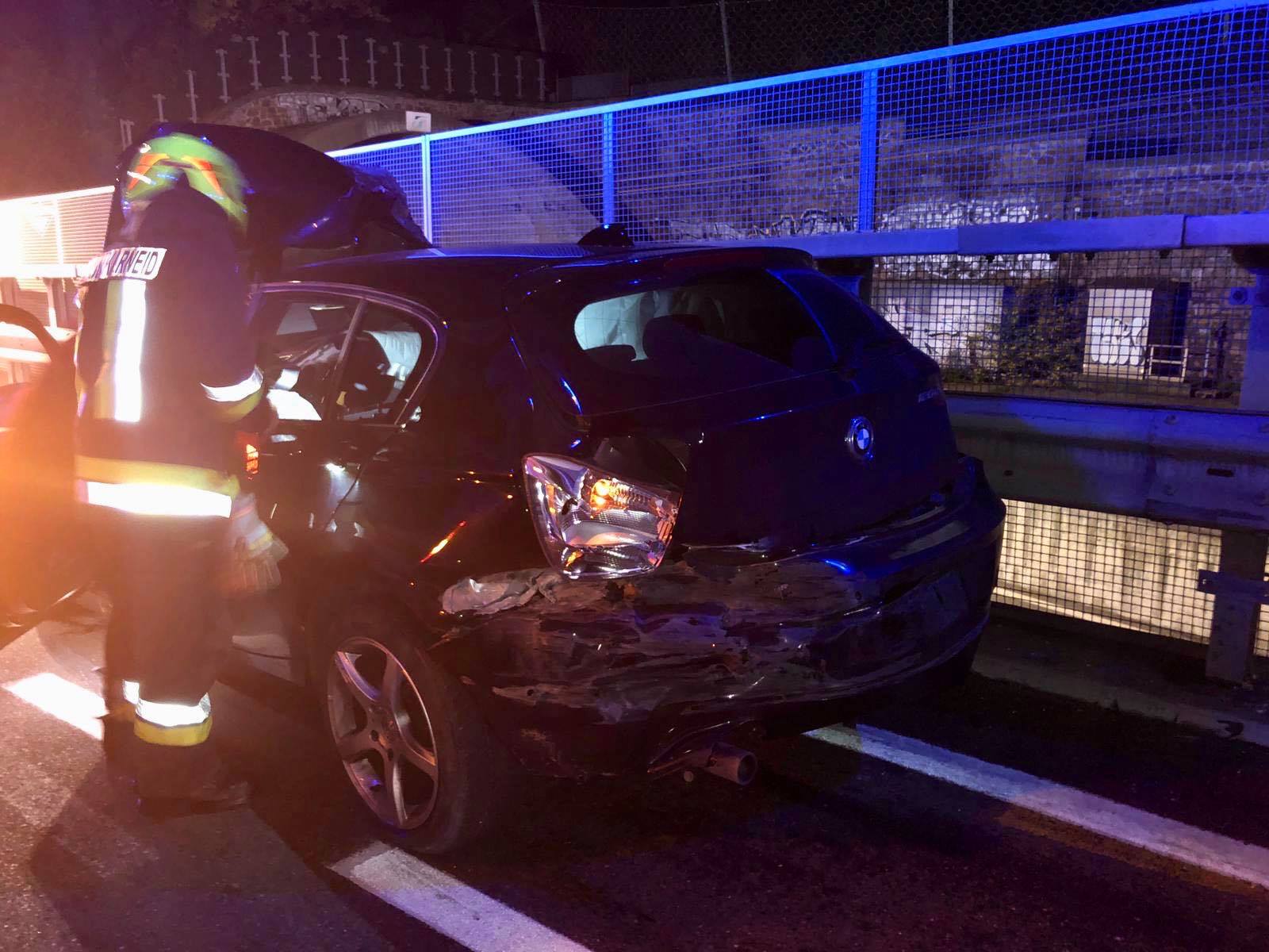 Dopo aver toccato il bus turistico, l’automobile si è girata più volte su se stessa sbandando contro i guardrail lungo un tracciato di circa 100 metri, per fermarsi infine a lato della carreggiata.