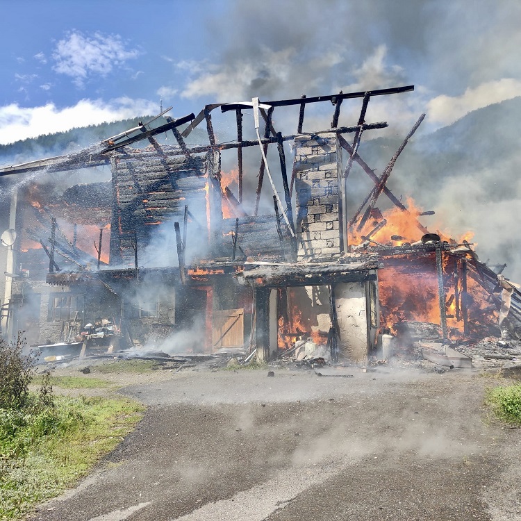 Paura nel pomeriggio di oggi 14 agosto poco prima delle 14, quando è scattato l’allarme per un vasto incendio di una casa con fienile in località Riva.