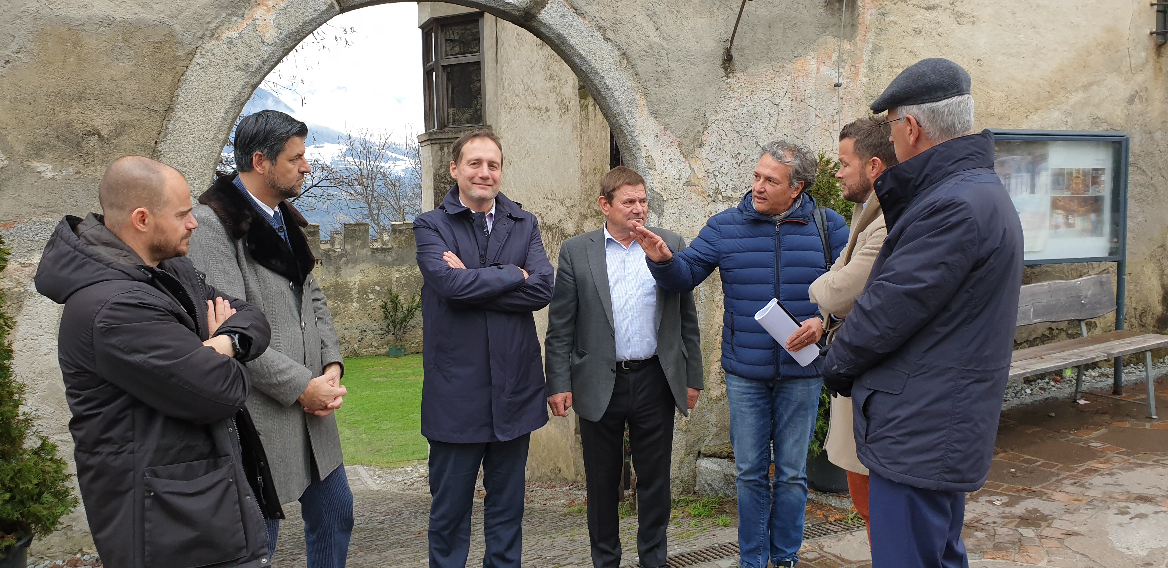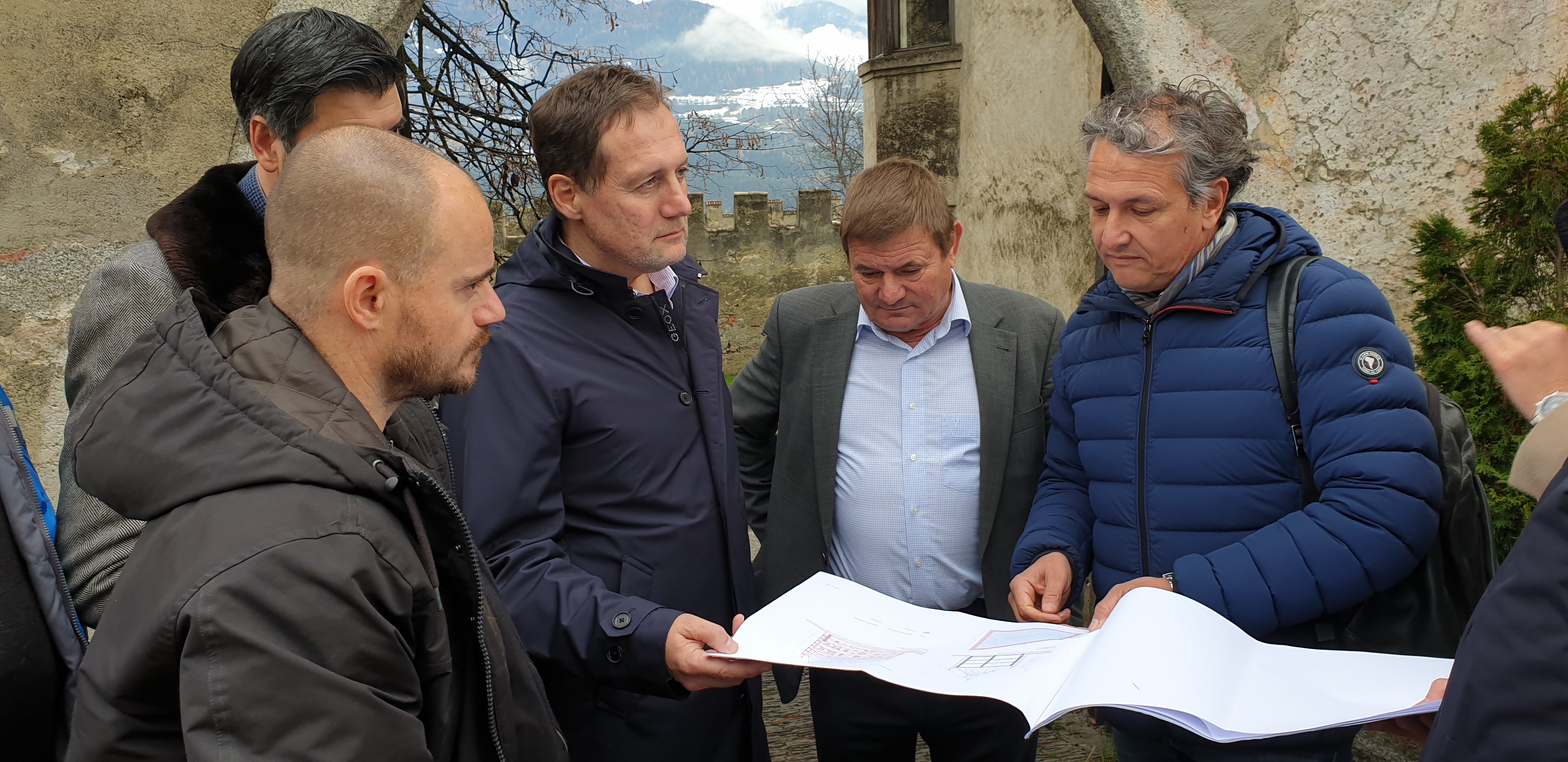 Al sopralluogo, per visionare i lavori necessari, erano presenti i collaboratori dell’assessore, il Direttore di Dipartimento dott. Paolo Montagner ed il Direttore della Ripartizione Patrimonio, geometra Daniel Bedin, il sindaco ed il vice sindaco di Velturno Konrad Messner ed il dott. Patrick Delueg , il consigliere provinciale Helmut Tauber, invitato dall’assessore Bessone, e l’Arch. Paolo Berlanda, incaricato della progettazione dei lavori .