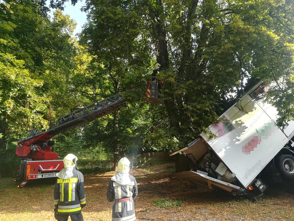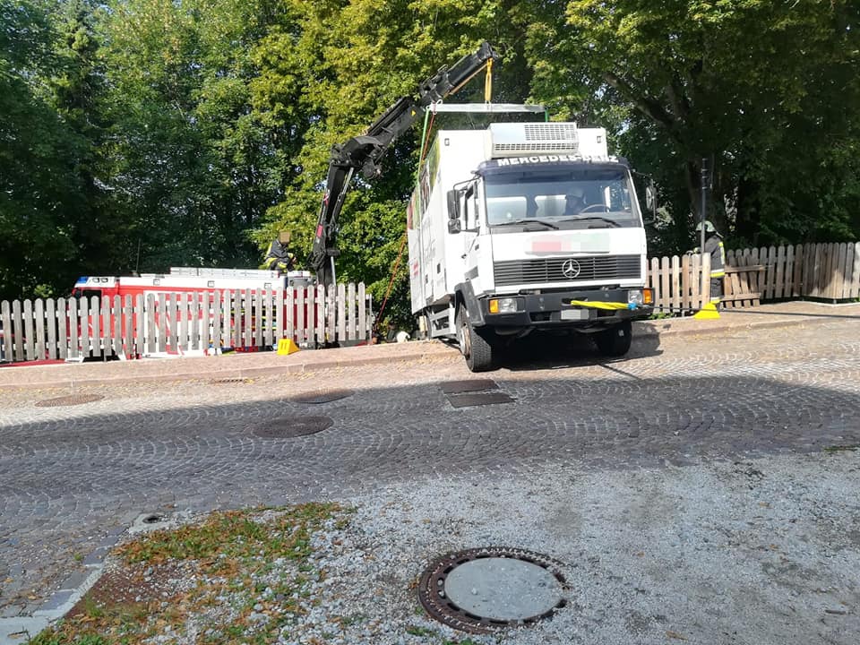 Curioso incidente ieri (13 luglio) a Siusi allo Sciliar dove un camion è finito in bilico a bordo strada rimanendo bloccato in pendenza.