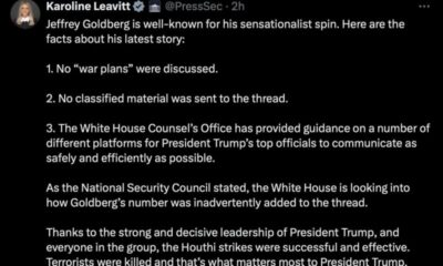 La portavoce della Casa Bianca, Karoline Leavitt, ha negato su X che siano state condivise informazioni militari riservate in una chat del Pentagono. Lo riporta l’Ansa....