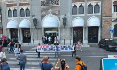 La manifestazione si è tenuta questa mattina, davanti all’hotel Excelsior di Venezia, in occasione della Mostra del cinema. Gli autori, militanti di Centopercentoanimalisti, hanno esposto...