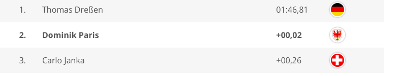 Resta il rammarico di non vedere la bandiera italiana affiancata al nome dei due atleti Carabinieri Fill e Paris. Il fatto è stato segnalato al Gruppo sportivo Arma dei Carabinieri a Roma, al Comando Legione del Trentino Alto Adige e alla FISI, Federazione italiana Sport invernali.