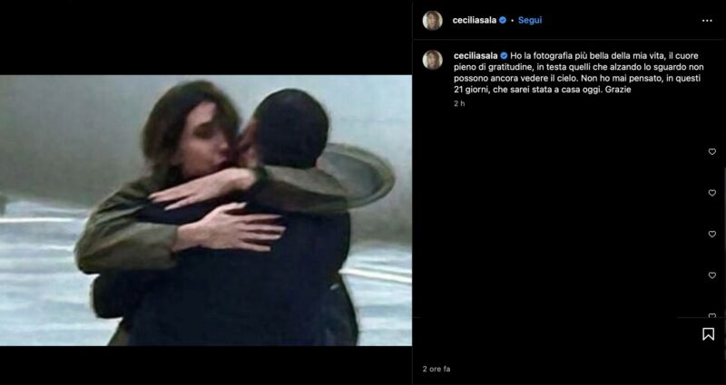 Così scrive Cecilia Sala su Instagram, a poche ore dal suo ritorno in Italia.