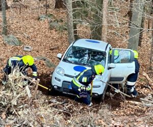 Labers: cede il freno a mano e la macchina precipita. Salvo il cagnolino rimasto intrappolato all’interno