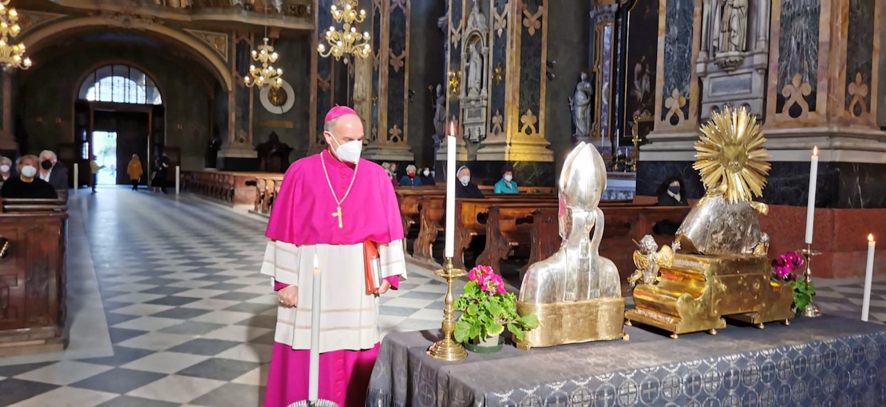 La festa dei patroni diocesani san Cassiano e san Vigilio a Bressanone anche quest’anno è stata condizionata dalle misure anti-Covid, che hanno impedito la tradizionale processione con le reliquie, risalente al 1703, e la benedizione finale in piazza. La celebrazione trilingue presieduta dal vescovo Ivo Muser nel duomo di Bressanone si è quindi conclusa con un momento di raccoglimento, in sostituzione della processione, e con la benedizione apostolica.
