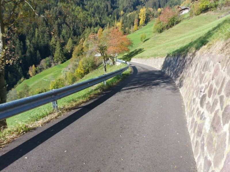 I lavori di risanamento riguardavano la nuova asfaltatura, la realizzazione di barriere aggiuntive, il rinnovo del muro di sostegno stradale e risp. la costruzione di nuovi muri di sostegno e il miglioramento del drenaggio superficiale.