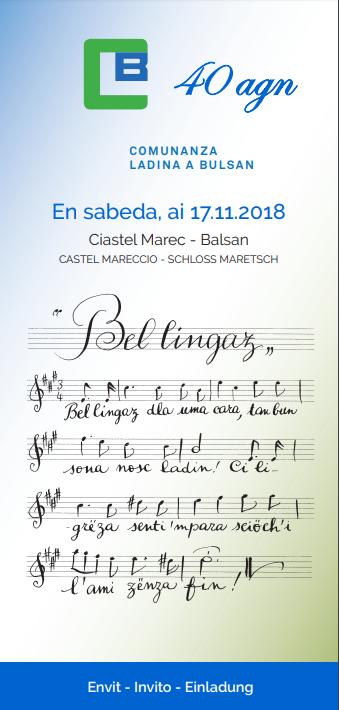 La “Comunanza Ladina a Bulsan” festeggia 40 anni di attività con un evento a Castel Mareccio sabato 17 novembre dalle ore 15.00 .