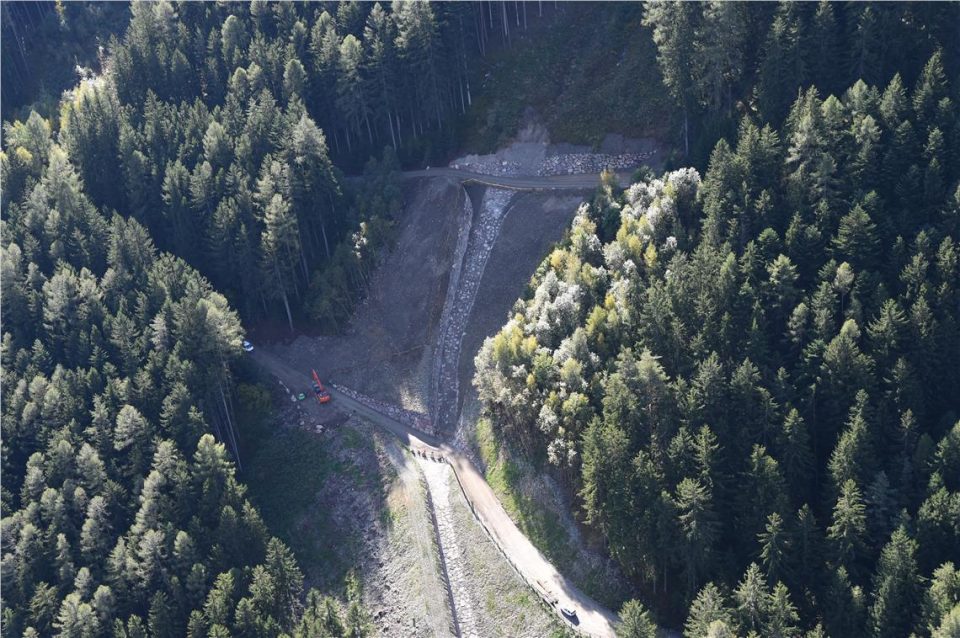 Grazie alle opere realizzate in questi mesi le acque dello Schindlergraben vengono dirottate nel torrente Riol ed in questo modo le eventuali frane verranno convogliate direttamente nell’apposito bacino di contenimento.