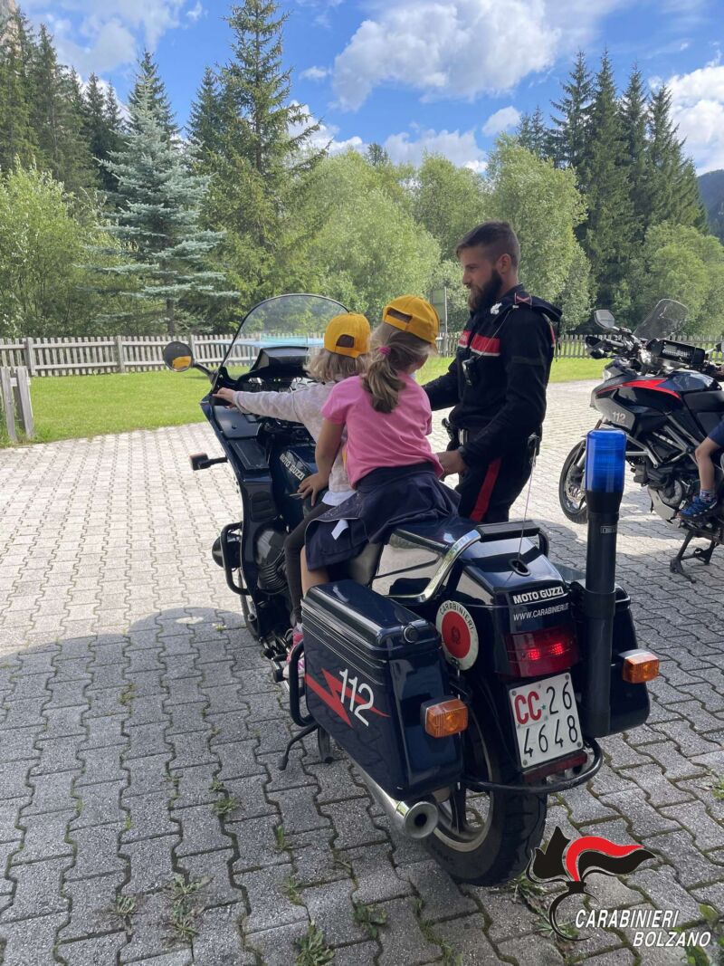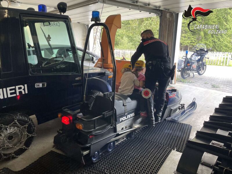 Oltre 40 bambini delle scuole elementari si sono recati in visita alla Caserma dei Carabinieri, che ospita il Comando Compagnia di Brunico, e nella Stazione Carabinieri di Corvara in Badia, dove sono stati accompagnati “dietro le quinte”, alla scoperta di quello che effettivamente succede all’interno di una caserma dei Carabinieri. Hanno “toccato con mano” le apparecchiature dedicate al “fotosegnalamento”, avendo la possibilità di accomodarsi e controllare a lungo le “gazzelle” (autovetture in dotazione) e le moto, con le luci lampeggianti e le sirene “spiegate”, accese a scopo dimostrativo per la particolare occasione. Non hanno esitato a salire anche su motoslitte in dotazione ai Carabinieri sciatori ed hanno anche trascorso qualche minuto all’interno degli Uffici di ricezione del pubblico e della centrale Operativa, cuore pulsante della Caserma.