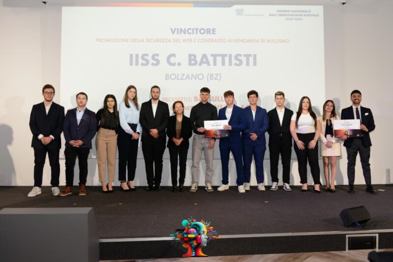 Non smette di raccogliere successi il gruppo di studentesse e studenti del Polo Economico Battisti di Bolzano, che lo scorso 21 maggio è stato premiato come vincitore assoluto nella categoria “Promozione della sicurezza del web e contrasto ai fenomeni di bullismo” del “Premio Nazionale sull’Innovazione Digitale”, promosso da Anitec-Assinform (Confindustria) in collaborazione con il Ministero dell’Istruzione e del Merito e con il patrocinio del Consiglio Nazionale Giovani (CNG).