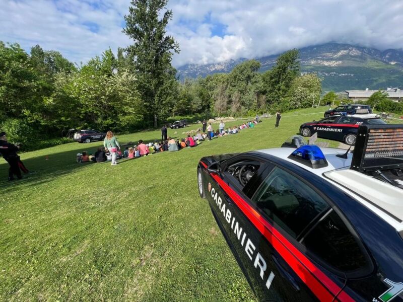 I cani, quattro giovani pastori tedeschi rispettivamente di nome Chip, Nick, Kelly e Volkmar, sotto l’attenta guida dei loro conduttori, si sono destreggiati in varie attività di ricerca e di difesa personale. La mattinata è poi proseguita con la possibilità per i giovani ospiti di salire a bordo delle autoradio dei carabinieri della Compagnia di Egna, tra cui una nuovissima Alfa Romeo Giulia, e di provare le tante dotazioni e tecnologie presenti sulle “gazzelle” dell’Arma. L’evento è stato molto apprezzato dai bambini che hanno poi voluto omaggiare i militari con uno splendido disegno in ricordo di questa felice e costruttiva mattinata trascorsa insieme ai loro amici carabinieri.