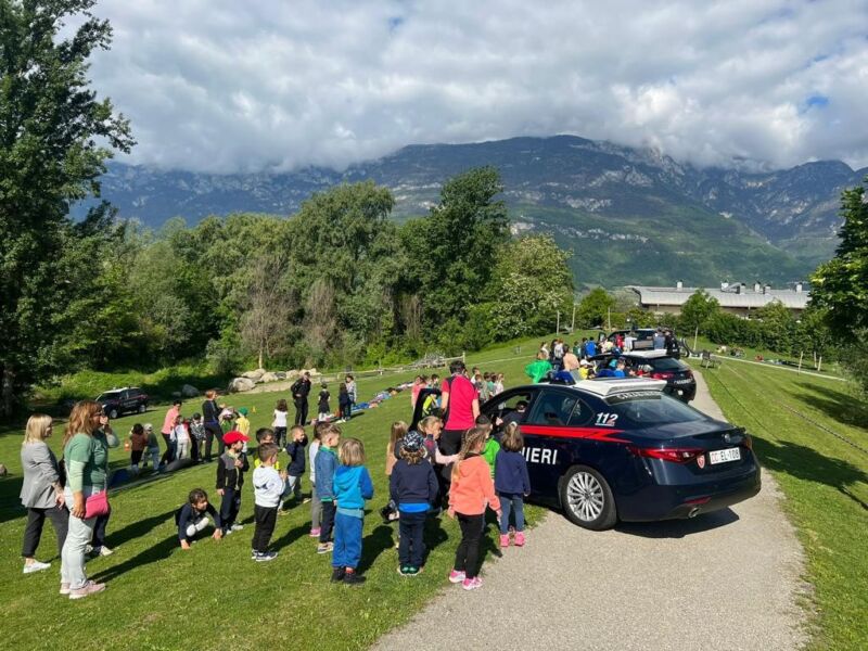 Presso il parco del “Gigante addormentato” si è tenuto un incontro con alcune scolaresche del luogo dove circa un centinaio di bambini con i rispettivi insegnanti delle scuole materne di lingua italiana e di lingua tedesca e tre classi della scuola primaria di lingua italiana, hanno potuto assistere ad una attività dimostrativa da parte di più unità del Nucleo Cinofili di Laives.