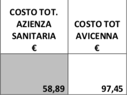 Nella colonna di sinistra del precedente grafico troviamo il costo orario per il servizio ordinario riferito al medico dipendente dell’Azienda Sanitaria, mentre a destra l’emolumento dovuto al personale medico esterno fornito da Avicenna per ogni singola unità di personale medico specializzato: 38,56 euro di differenza.