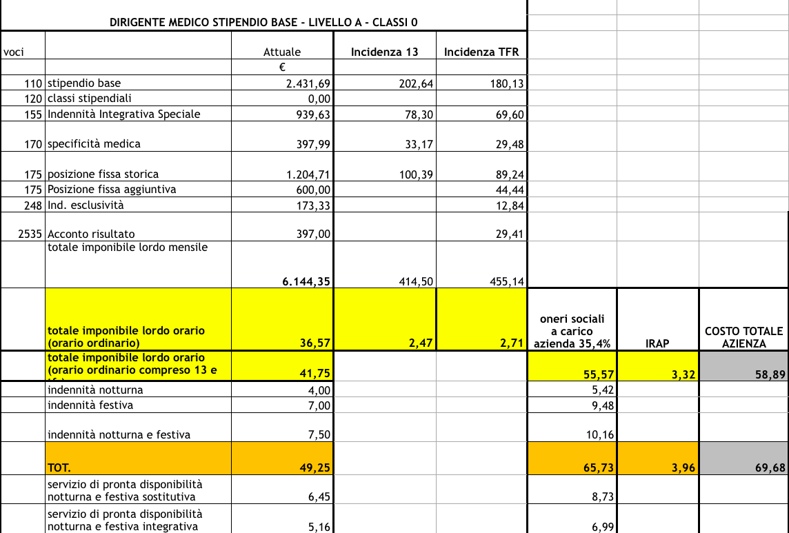 In questo costo, non sono compresi i costi dell’ assicurazione per conto terzi e il costo generale amministrativo. Il costo standard per l’anno 2018 sarà presumibilmente più alto visto il nuovo contratto collettivo. Per cui ribadiamo che ciò è che è stato comunicato dal sindacato ANAAO non è esatto e per questo teniamo a questa rettifica“.