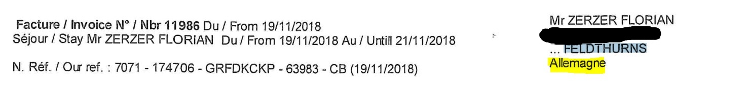 Sotto, uno stralcio della fattura rilasciata a Florian Zerzer dall’albergo lussemburghese presso il quale ha soggiornato.