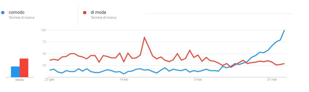 Paragonandola al termine “di moda”, che esprime una ricerca proiettata verso oggetti trendy e in voga, la parola comoda riflette invece un sentimento di relax e comfort, un mood “pantofolaio” tipico di chi ha voglia di allentare lo stress e rilassarsi a casa.