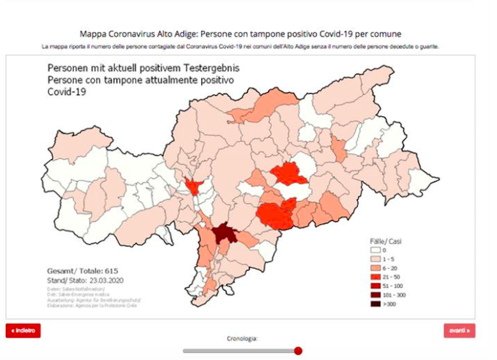 A questo link è possibile consultare la mappa aggiornata dell’Alto Adige sul Coronavirus.