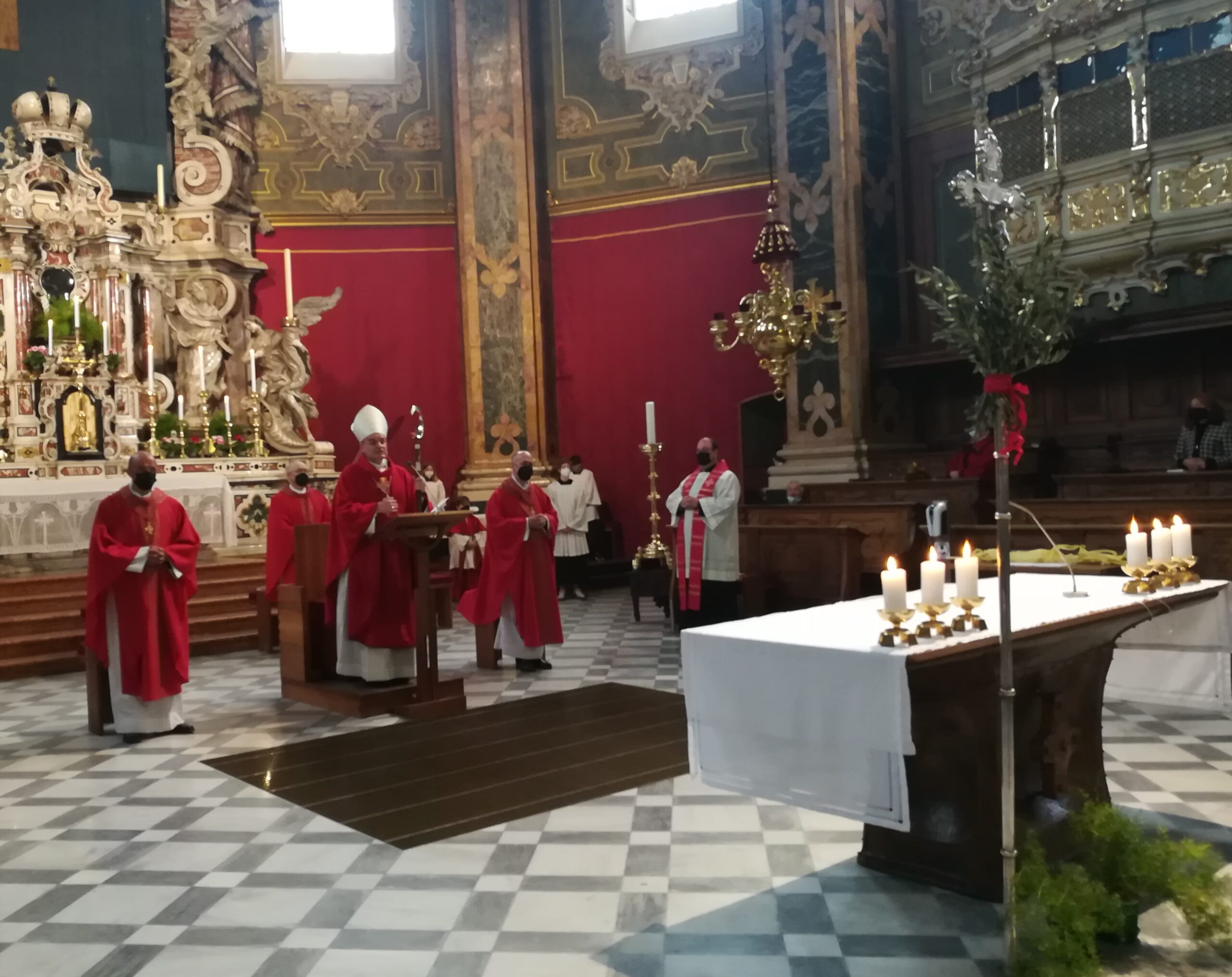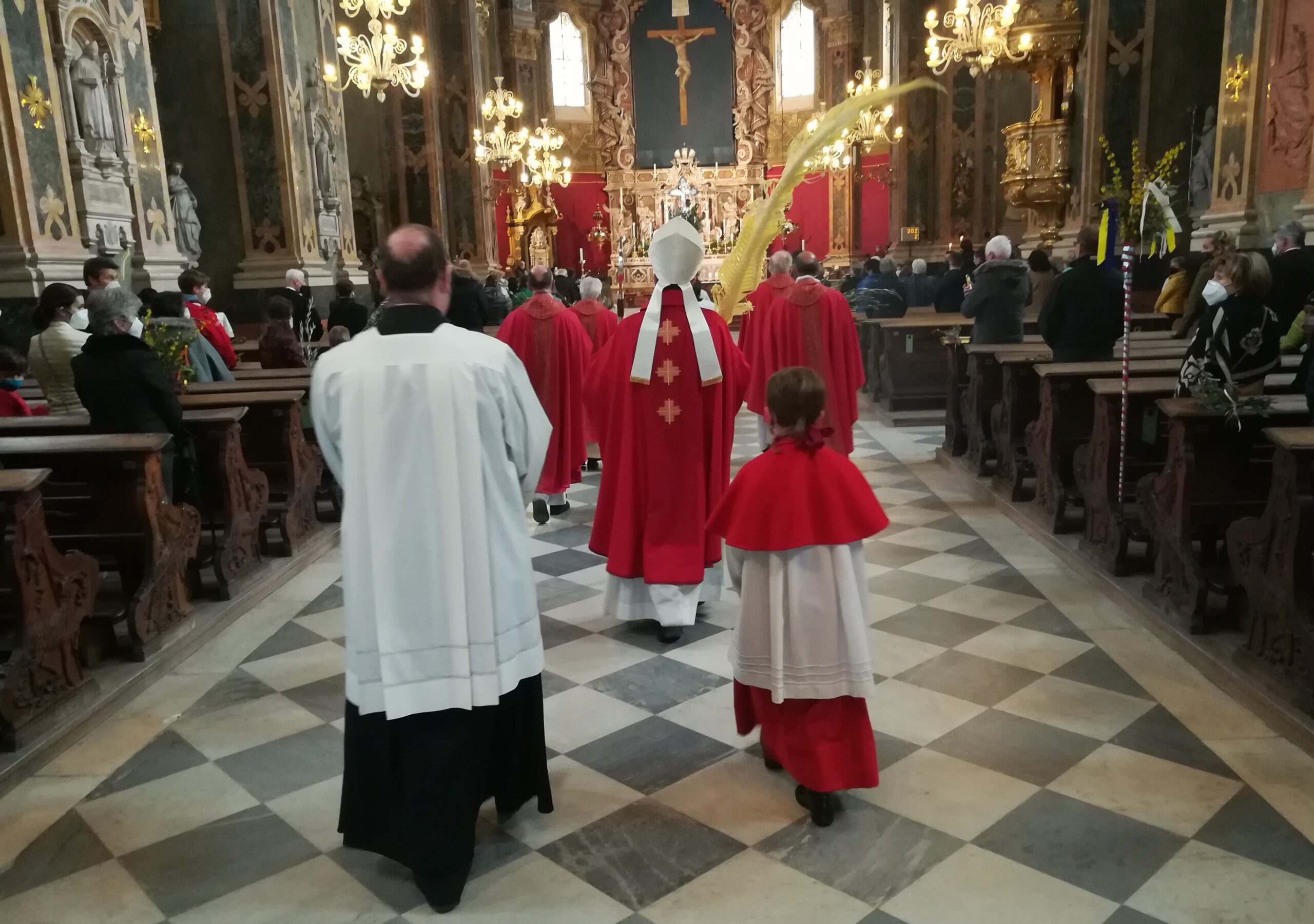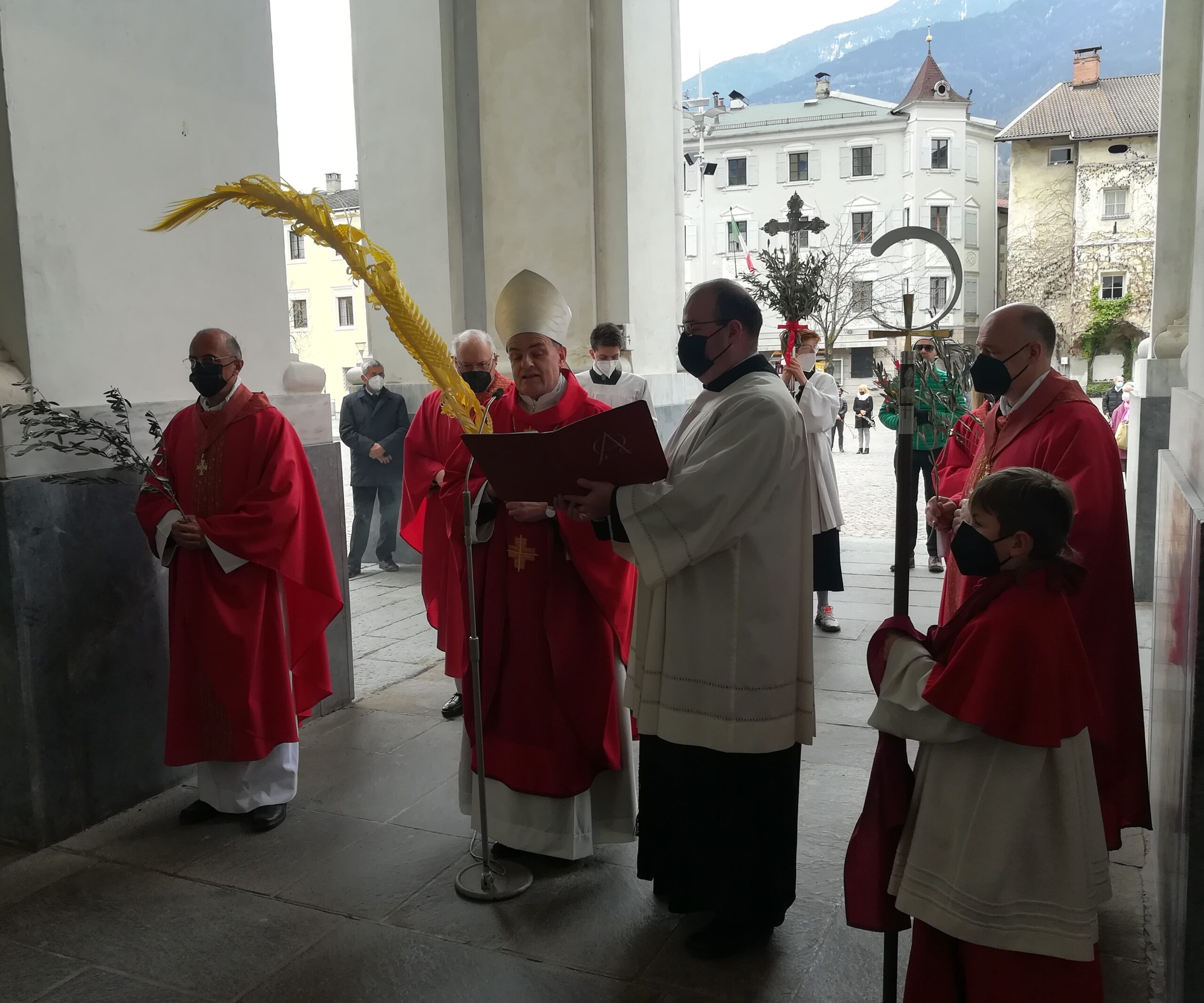 Nel duomo di Bressanone il vescovo Ivo Muser ha celebrato la Domenica delle Palme che ricorda l’ingresso di Gesù a Gerusalemme e apre la Settimana Santa, per i cristiani la settimana più importante di tutto l’anno. Anche quest’anno la liturgia è iniziata senza la tradizionale processione, nel rispetto delle restrizioni anti-Covid. I sacerdoti e i fedeli hanno tenuto in mano i rami d’ulivo portati da casa o distribuiti all’ingresso del duomo.