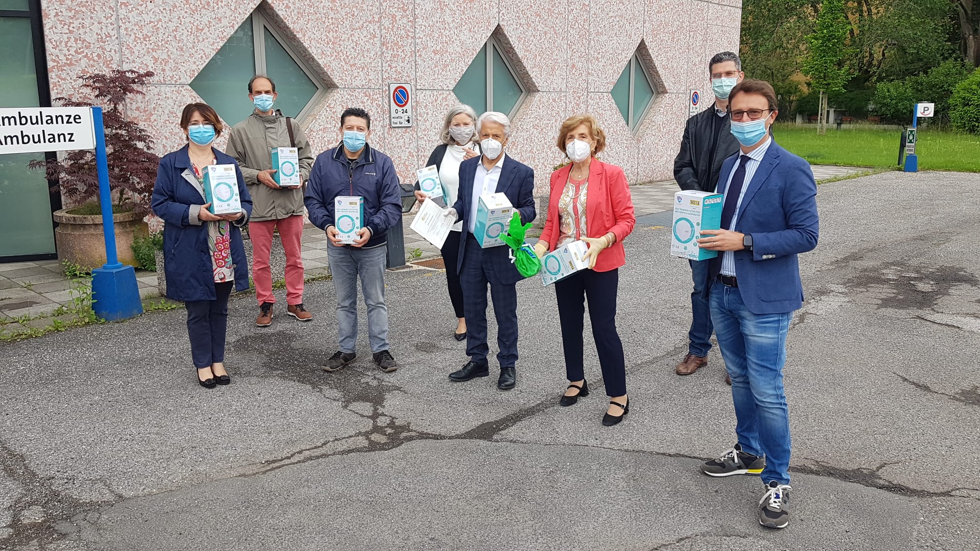Le mascherine sono state consegnate oggi (13 maggio) alla Residenza per Anziani di Villa Europa a Bolzano con un breve ma significativo incontro al quale hanno partecipato la coppia bolzanina, la direttrice generale dell’Azienda Servizi Sociali di Bolzano Liliana di Fede, l’Assessore Comunale al sociale Juri Andriollo, la vice direttrice ed il direttore di Villa Europa Lucia Conci e Luca Stancher, il dir. ripartizione ASSB Matteo Faifer ed il segretario di Cittadinanzattiva Alto Adige – Tribunale per i Diritti del Malato Stefano Mascheroni.