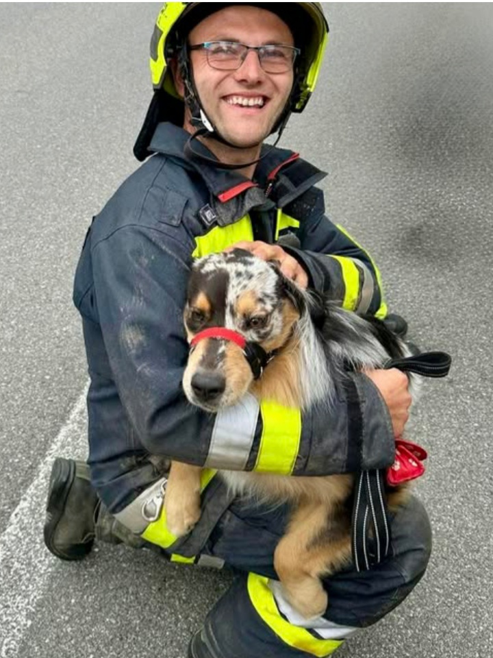 Dopo l’incidente, il cuore va oltre l’emergenza: i vigili del fuoco accudiscono anche il cane dei feriti