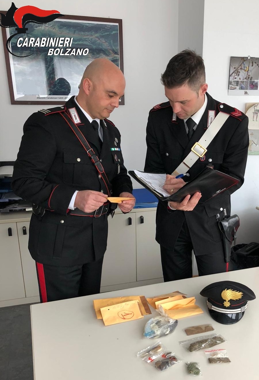 Stante l’assenza di precedenti, il giovane è solo stato denunciato a piede libero alla Procura della Repubblica di Bolzano per il reato di detenzione di stupefacenti ai fini dello spaccio.