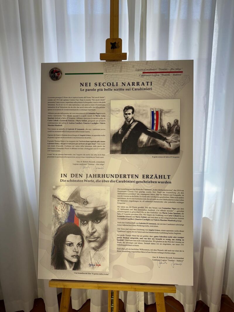 Terminata la cerimonia militare, è stata inaugurata la mostra“Nei Secoli Narrati”, che porta avanti il filone avviato l’anno scorso con un’esposizione di pittura e fotografia. La mostra riprende il motto dell’Arma “Nei Secoli Fedele” e presenta una rassegna di brani: le parole più belle scritte sui Carabinieri. Ognuno dei brani scelti è illustrato da un disegno di Angelo Grieco, Appuntato Scelto in forza alla Legione con un talento e una formazione da artista.
