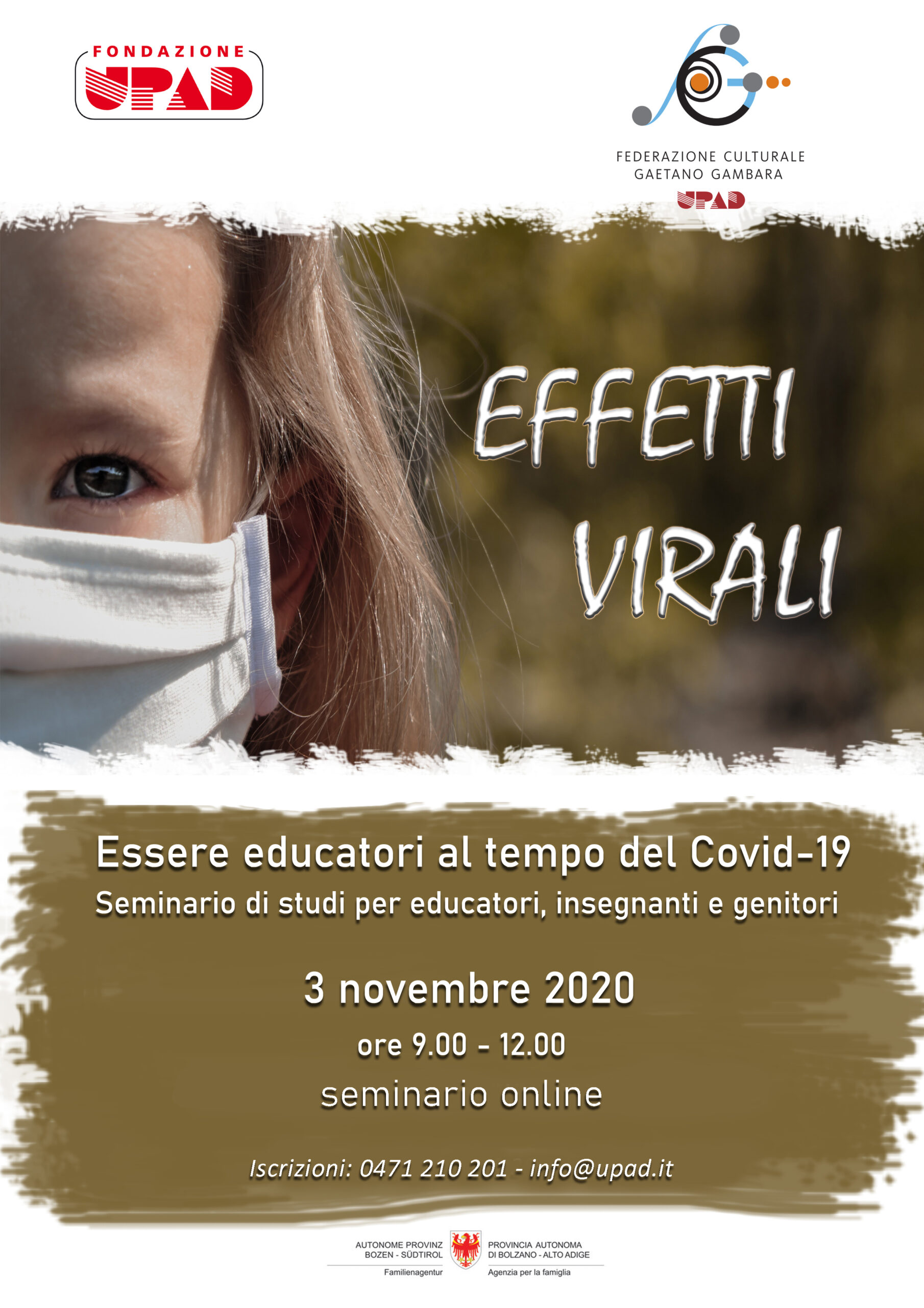 A questa domanda prova a rispondere il seminario on line “Effetti virali. Essere educatori al tempo del covid-19”, previsto martedì 3 novembre dalle 9.00 alle 12.00.
