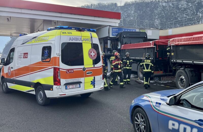 Egna, malore al volante: camionista si schianta contro l’area di servizio