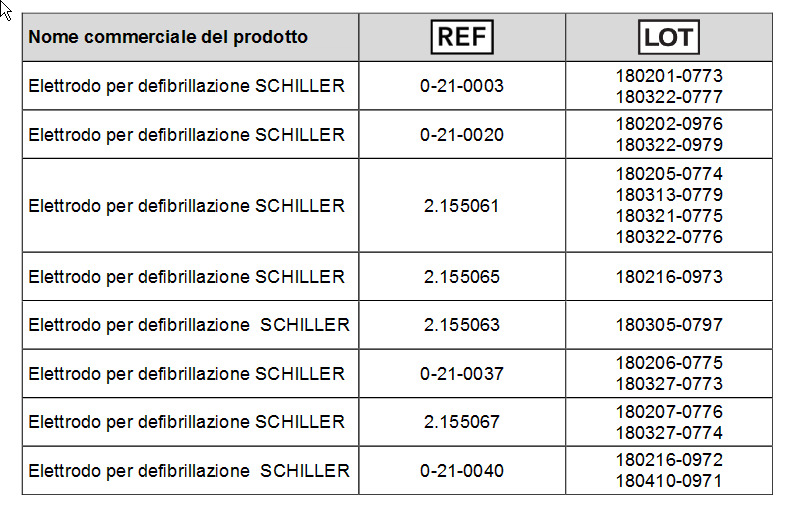 Elettrodi Schiller per defibrillatore: individuati pezzi difettosi