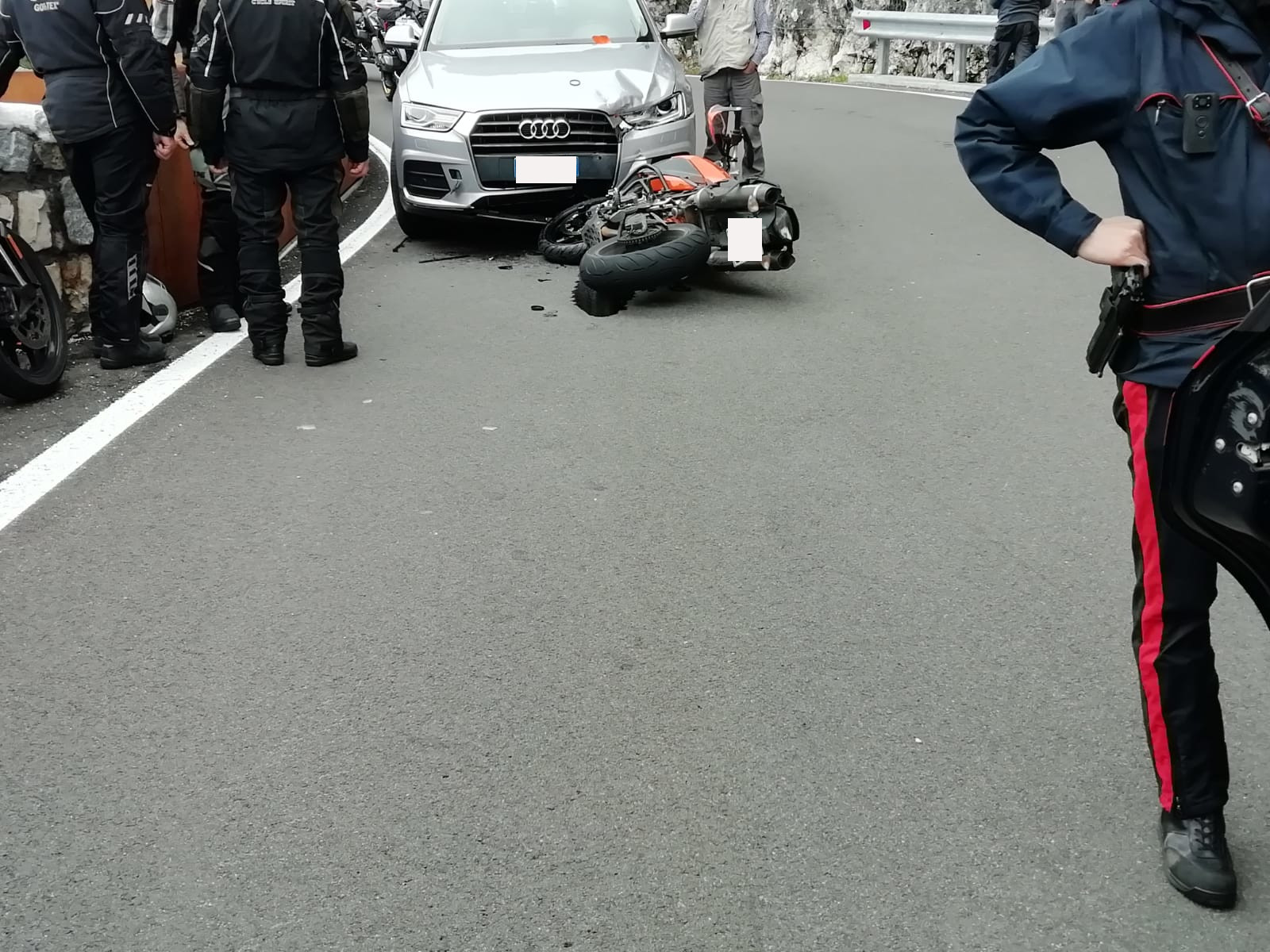 Ennesimo incidente sulla Mendola: centauro tedesco si schianta in curva contro un suv