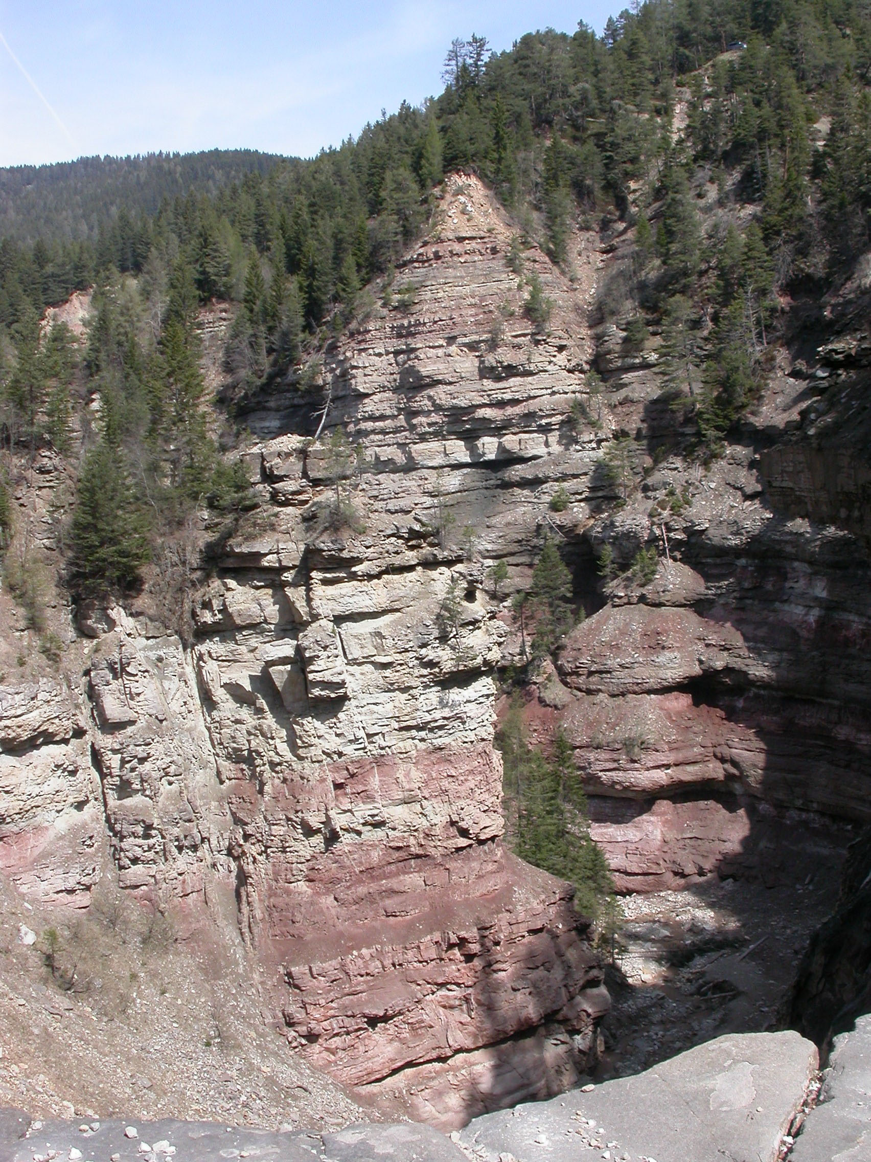 Una gola che si addentra nella montagna per otto chilometri e profonda fino a 400 metri: è la gola del Bletterbach, nei pressi di Aldino ai piedi del Corno Bianco, scavata dal torrente durante l’era glaciale, circa 15.000 anni fa.