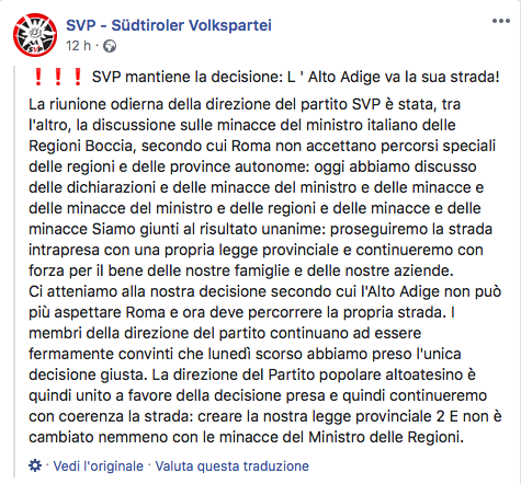 Lo stop del ministro per i rapporti con le regioni agli indipendentismi territoriali almeno fino alla metà di maggio non è piaciuto al presidente della provincia di Bolzano che ha deciso di intraprendere la strada del ddl che a livello locale porterà alle riaperture anticipate rispetto al resto del paese.