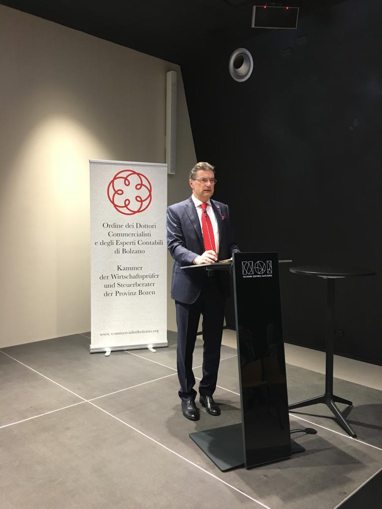 Sotto Claudio Zago, presidente dell’Ordine dei Commercialisti di Bolzano.