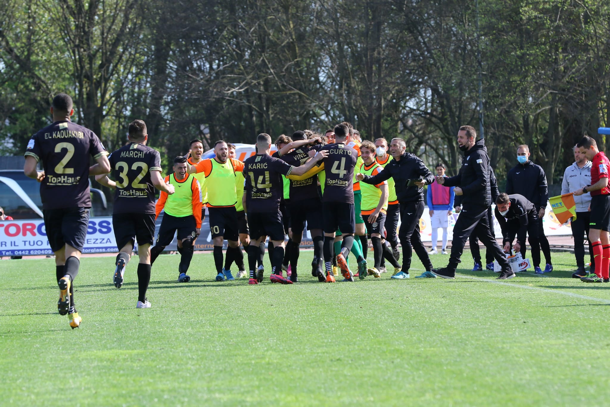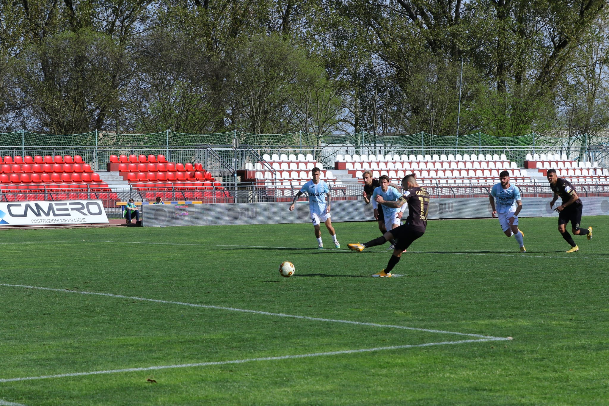 Rolfini conquista a palla sulla sinistra, si invola e da dentro l’area serve l’assist a Bruic, pronto alla conclusione a rete per il 2-1. I biancorossi reagiscono con il piglio della squadra che sa quello che vuole e, soprattutto, sa come ottenerlo. Al 17’ arriva il pareggio: conclusione verso la porta di casa, Rolfini colpisce intenzionalmente con la mano, espulsione e rigore.