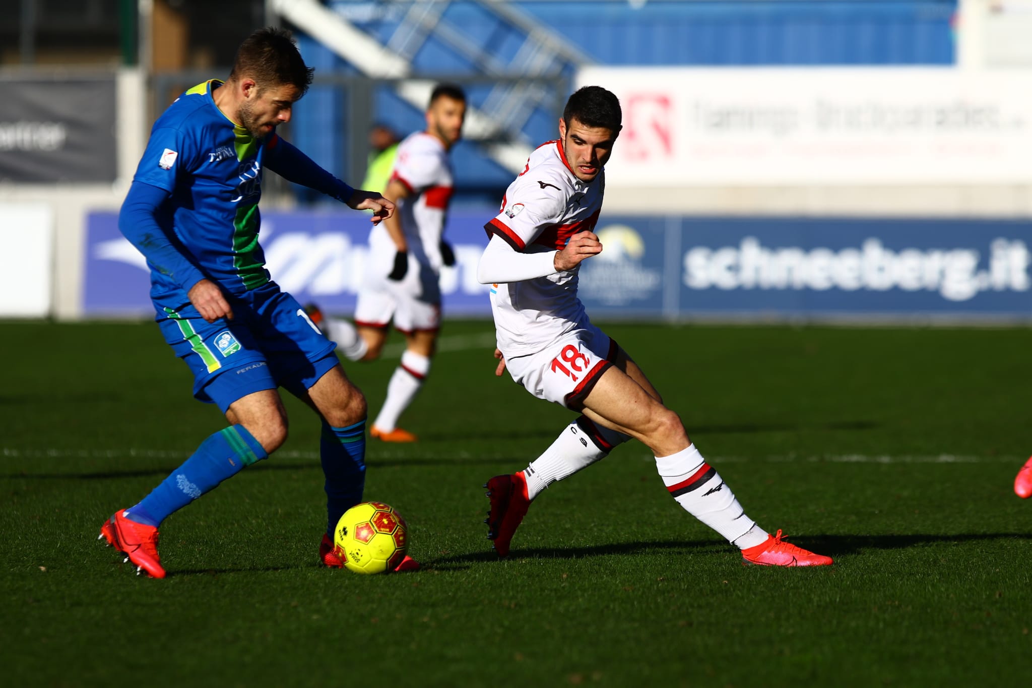 La ripresa inizia con un Südtirol arrembante, costantemente all’offensiva, ma proprio nel momento migliore arriva il raddoppio ospite. Al 13’ prima azione della ripresa da parte dei gardesani: discesa di Hergheligiu sulla destra, palla in area a trovare la finta di Guerra che trova l’inserimento a rimorchio sul secondo palo di Scarsella, il quale da pochi passi insacca: 0-2.