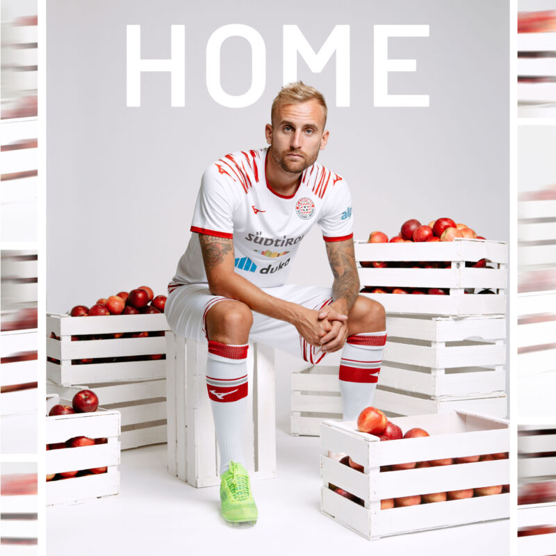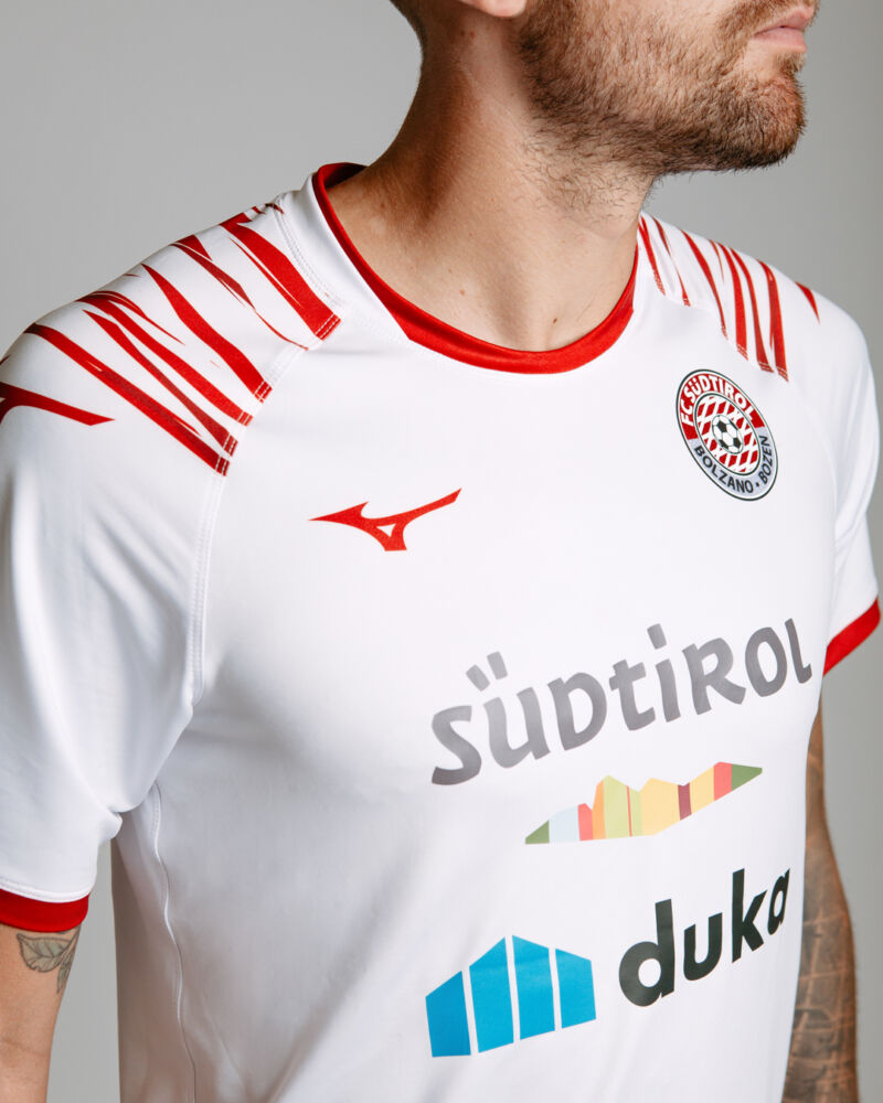Casacca speciale per l’FC Südtirol nel secondo campionato di fila in serie B: si tratta della quarta divisa casalinga realizzata in collaborazione con lo sponsor tecnico Mizuno. Il debutto a Vipiteno, in occasione dell’amichevole con la formazione di serie A del Sassuolo.